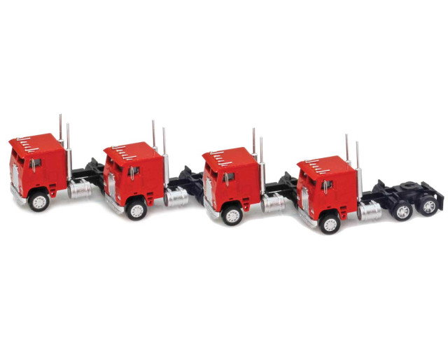 AZL 3 Axel 4 Pack Red Cab-Over Truck with Sleeper