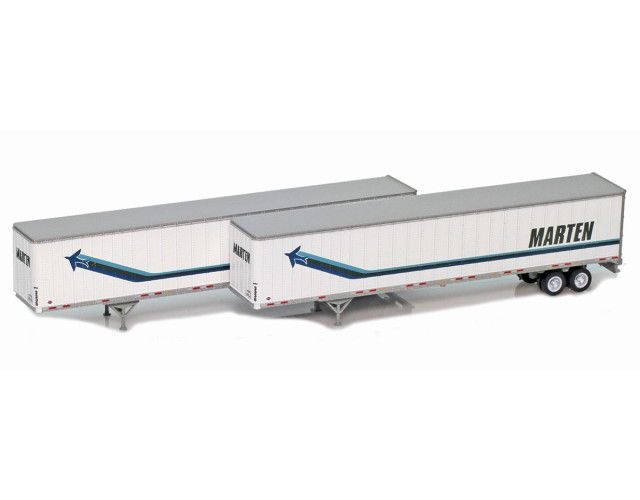 2-pack of 53’ trailers. The 53' trailers are all new tooling from AZL. The trailers feature wheels that turn, the ability to reposition the wheels. Set comes with 2 trailer legs retracted (for when the trailer is on the tractor) can be swapped with legs installed on the trailer.