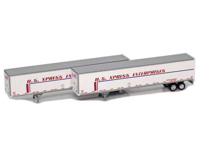 2-pack of 53’ trailers. The 53' trailers are all new tooling from AZL. The trailers feature wheels that turn, the ability to reposition the wheels. Set comes with 2 trailer legs retracted (for when the trailer is on the tractor) can be swapped with legs installed on the trailer.